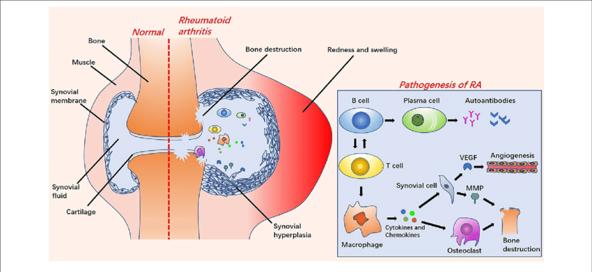Rheumatoid arthritis involves the immune system thinking joints in the body are foreign and should be attacked. There is something called rheumatoid factor, which binds to the antibody IgG. This bound unit attacks the joint linings, and their unfortunate goal is to destroy the collagen and cartilage in those spaces. The smoothness of that joint’s motion is reduced by this process. Swelling, tenderness, stiffness, and pain occur as a result. Picture a bunch of antibodies clogging the tiny space between your knuckles, or the knee joints, or the toes. There is so much inflammation over time that deformities arise in these areas. Fingers/hands begin to angle in different directions (termed a ‘swan neck deformity”), and the knuckles look enlarged. Folks with RA whose feet are targeted sometimes become unable to walk due to the toes and bones becoming so diseased. This is all because the immune system decided it didn’t like these joint tissues. As a primary care provider, I feel one of the most tortuous and painful diseases I see regularly is RA. See the helpful graphic below.